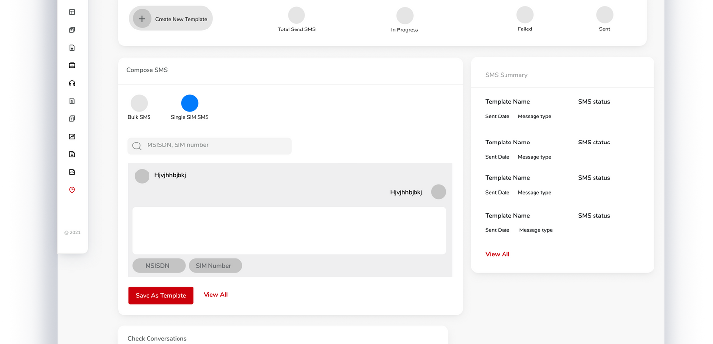 Divided Compose, Batch SMS and Conversations. Users can compose SMS and save the same SMS as a template. In this scenario, a data table was not much required.